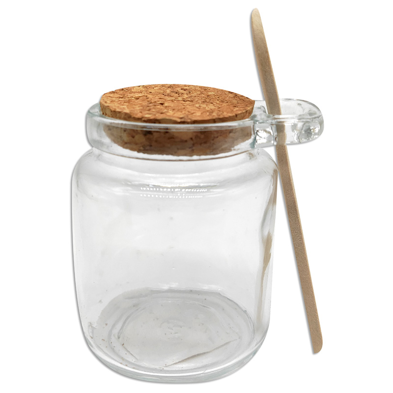 Frasco de vidrio con tapa corcho y cuchara