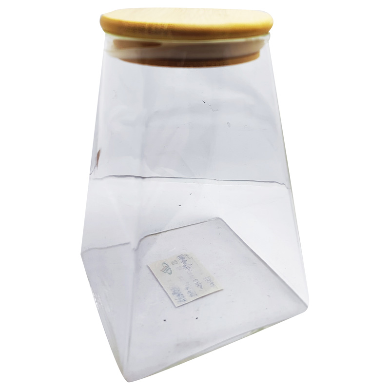 Frasco de vidrio piámide con tapa wood