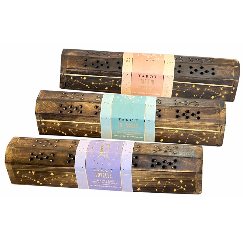 Porta incienso de madera decorado colección Tarot con 10 inciensos